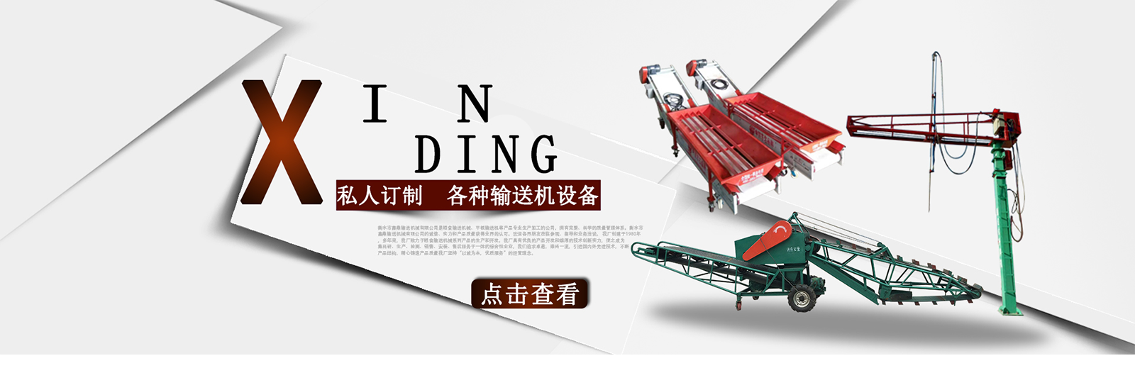 衡水市鑫鼎輸送機(jī)械有限公司是糧食輸送機(jī)械、平板輸送機(jī)等產(chǎn)品專業(yè)生產(chǎn)加工的公司,擁有完整、科學(xué)的質(zhì)量管理體系。衡水市鑫鼎輸送機(jī)械有限公司的誠信、實(shí)力和產(chǎn)品質(zhì)量獲得業(yè)界的認(rèn)可。歡迎各界朋友蒞臨參觀、指導(dǎo)和業(yè)務(wù)洽談。 我廠創(chuàng)建于1980年,多年來,我廠致力于糧食輸送機(jī)械系列產(chǎn)品的生產(chǎn)和開發(fā)。我廠具有優(yōu)良的產(chǎn)品開發(fā)和雄厚的技術(shù)創(chuàng)新實(shí)力,使之成為集科研、生產(chǎn)、檢測(cè)、銷售、安裝、售后服務(wù)于一體的綜合性企業(yè),我們追求卓越,崇尚一流,引進(jìn)國內(nèi)外先進(jìn)技術(shù),不斷產(chǎn)品結(jié)構(gòu),精心鑄造產(chǎn)品質(zhì)量我廠堅(jiān)持“以誠為本,優(yōu)質(zhì)服務(wù)”的經(jīng)營理念。。積極拓展市場,贏得了廣大客戶的信賴和一致好評(píng)。產(chǎn)品暢銷山西、山東、遼寧、黑龍江、吉林、北京、天津、內(nèi)蒙古等28個(gè)省、市、自治區(qū)。